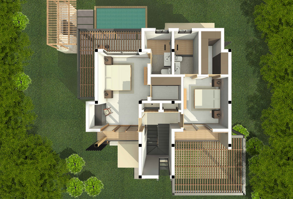 El área de villas contiene 49 lotes con 3 modelos de casa a escoger según el gusto de sus adquirientes que rondan desde los 124m2 hasta los 180m2 de construcción, todos con 3 habitaciones, patio y opcionales de piscina.